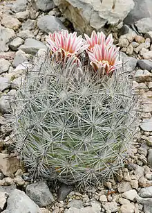 Threats to this rare species have included mercury mining, petroleum exploration activities, off-road vehicles, and grazing.[2] The worst threat has been poaching by cactus collectors.[2][3] The collectors employed professional diggers to go into the habitat and retrieve this and other species of cacti, which were stockpiled, shipped away for sale, and sometimes discarded or wasted.[2][4] The type locality of the cactus has been scoured for specimens and few are found there anymore.[2][4] Plants in Big Bend National Park occur on rugged terrain and have generally been safe from collectors.[4] In 1983 the cactus was placed on Appendix 1 of CITES in an effort to protect it from harvesting.[2]