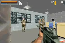 Ecks vs. Sever is a first-person shooter (FPS) video game for the Game Boy Advance handheld game console. It was developed by Crawfish Interactive and released in November 2001. The game is based on an early script of the 2002 film Ballistic: Ecks vs. Sever, and is the first video game released before the film it is based on had even begun production.[3] The sequel Ballistic: Ecks vs. Sever was released within a week of the film and follows its plot line more closely than the first game does.