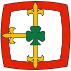 The emblem mirrors the evolution of the association. It is the old EUdF emblem enriched with a trefoil in the center to symbolize the merger with part of the PFF (girls) in 1970, lily flowers symbolizing the presence of boys. Until 1995, the logo included the word "federation" (again because of the merger with the FFE).[3]