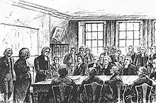Founding meeting of the Church Missionary Society at Aldersgate Street in the City of London on 12 April 1799