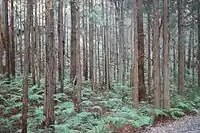 Grassy woodlands, the most predominant biome in the Sydney region,[9] mainly occur in the Cumberland Plain west of Sydney CBD, which generally feature eucalyptus trees that are usually in open, dry sclerophyll woodland areas with shrubs (typically wattles, callistemons, grevilleas and banksias) and sparse grass in the understory, reminiscent of Mediterranean forests.[10] The plants in this community tend to have rough and spiky leaves, as they're grown in areas with low soil fertility. Wet sclerophyll forests, which are part of Eastern Australian temperate forests, have narrow, relatively tall, dense trees with a lush, moist understorey of fleecy shrubs and tree ferns. They are mainly found in the wetter areas, such as Forest District and the North Shore.[11]