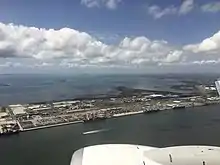 Brisbane throughout its history has been one of Australia's most important seaport cities. The Port of Brisbane located at the Brisbane River's mouth on Moreton Bay and on the adjacent Fisherman's Island, created by means of land reclamation. It is the 3rd busiest port in Australia for value of goods.[21] Container freight, sugar, grain, coal and bulk liquids are the major exports. Most of the port facilities are less than three decades old and some are built on reclaimed mangroves and wetlands. The Port is a part of the Australia TradeCoast, which includes the Brisbane Airport along with large industrial estates located along both banks at the mouth of the Brisbane River.[22]