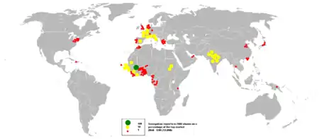 France 16.3%, China 10.4%, Nigeria 8%, India 7.2%, Netherlands 4.8%, Spain 4.2% (2017)