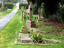 The cemetery contains an elaborate monument to Lydia Cecilia Hill, known as Cissie Hill, a cabaret dancer and close friend of Ibrahim, Sultan of Johor who funded the building of Mayfair Court and the associated servants' quarters in Grand Drive, Herne Bay for her.[53][54] In 1938 there were rumours of an engagement between the "glamour girl" Sissy and the 64-year-old divorcee sultan, whom she had met in Ceylon in 1934,[55] but the sultan promptly denied this.[56] Sissy was killed in a daylight bombing raid aged 27 while shopping in Canterbury on 11 October 1940, and was identified by her jewellery, said to be a gift from the sultan.[57][58]