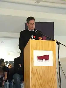 Campbell applied for the permanent position with wide support within the MUN community, and was shortlisted by the Search Committee. However, in late July 2008, Minister of Education Joan Burke, who was not part of the selection process, stated after an interview with two shortlisted candidates that neither was acceptable to her. This was widely criticized as political interference in the autonomy of the University. Campbell immediately withdrew his name from consideration, and the Chair of Memorial's Board of Trustees, Gil Dalton, also withdrew as leader of the search committee in September 2008.[1] Campbell remained in his position until September 2009, when he accepted the position of President of the University of New Brunswick.[2] In January 2014, he took part in negotiations to end the first strike of academic staff in UNB's 225-plus years history. He later approved compensation to UNB students. The labour dispute was resolved by arbitration.[3][4][5]