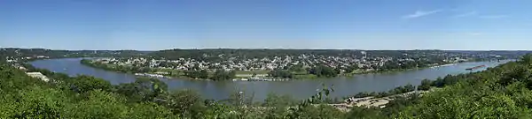 Eden Park Overlook's view of the Ohio River and Kentucky.