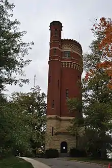 The city constructed a 12 acres (4.9 ha), 96 million gallon reservoir between 1866 and 1878.[3] The Eden Park Station No. 7 pumped water from the Ohio River into the reservoir and then into the Eden Park Stand Pipe.[4] The reservoir was removed in the early 1960s and the site redeveloped into the Mirror Lake reflecting pool and baseball fields.[5] The former reservoir's dam, Eden Park Station No. 7, and Eden Park Stand Pipe still stand as historical remnants.