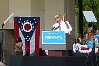 United States President Barack Obama speaking at Seasongood Pavilion during the Presidential Election Campaign on September 17, 2012