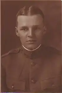 In 1916, Crossman enrolled in the Reserve Officers' Training Corps (ROTC) at Yale and reported to the Plattsburgh Barracks, Plattsburgh, New York for training. He was commissioned a Second Lieutenant in the Field Artillery on August 15, 1917. Crossman was assigned to the 76th Field Artillery at Fort Ethan Allen, Vermont and promoted to First Lieutenant on October 26. He was transferred to the 4th Field Artillery at Camp Shelby, Mississippi on December 8, 1917 and assumed command of Battery C, 4th Field Artillery at Camp Shelby on June 6, 1918. Subsequently, he commanded this battery at Camp Logan, Houston, Texas and at Camp Scurry, Corpus Christi, Texas until January 4, 1919. Crossman was recommended for promotion to Captain on October 27, 1918, but the appointment was not made due to the Armistice. From January 9 – March 1919 Crossman attended the Battery Officer's course in the Field Artillery School of Fire at Fort Sill, Oklahoma. He returned to the 4th Field Artillery at Camp Stanley, Texas as a Battery Commander, and transferred to the Reserve Corps (inactive) on June 11, 1919.[6] Crossman was Captain Field Artillery Reserve from 1919–1924 and a Major from 1924.[7]