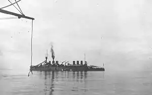 - The armor layout is somewhat unclear; in Directory of the World's Capital Ships, Silverstone provides different figures, including a thicker, 170 mm (6.7 in) armored belt and thinner protection for the gun turrets and casemates, at 150 mm (5.9 in) and 120 mm (4.7 in), respectively. Additionally, Peltier's contemporary (1908) description offers a third set of figures.[12][11]