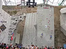 When it opened in December 2003, the centre was the largest indoor climbing arena in the world, but problems during construction increased the final cost to GB£22 million.[2][6] In March 2004 the centre went into receivership due to a leaky roof, poor management, and a lack of money, leaving a number of contractors unpaid.[7][8] It was purchased by the City of Edinburgh Council in October 2005 for GB£3.87 million, and then closed in August 2006 to allow full completion of the venue.[9][10][11]