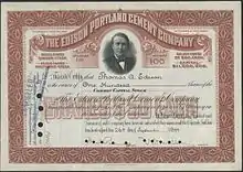 ![]() Share of the Edison Portland Cement Company from the 26th of September 1899 | |