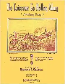 Edmund L. Gruber was one of the most popular artillerymen of his time and was a noted Army polo team champion, but he would make his enduring mark with music. He was the author of the 5th Artillery Regimental song, titled "The Caissons Go Rolling Along."[3] This was transformed into a march by John Philip Sousa in 1917 and renamed "The Field Artillery Song." It was adopted in 1956 as the official song of the United States Army and retitled, "The Army Goes Rolling Along."[4] It is typically called "The Army Song."