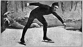 Lamy first came into prominence on the speed skating scene during the 1907–1908 winter, and was seen as a worthy successor of the former amateur speed skater Morris Wood who turned professional in 1908.[2] In 1909, aged 18, "the Saranac Lake whirlwind", as he was nicknamed, had already taken over the reign as amateur skating champion.[3]