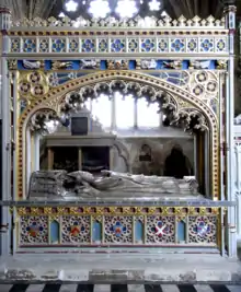 Stafford died on 3 September 1419[3][8] and was buried in the Lady Chapel of Exeter Cathedral, where survives his elaborate monument with recumbent alabaster effigy. His family lands and the barony passed to Thomas Stafford. His executors are named in 1421.[9]