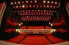 The theatre's facade is articulated by classic arches made of travertine marble. The building has four levels that, in addition to the two main halls, house the administrative offices, a reception hall, the Sala de la Cultura (Culture Hall) and a bar. The Sala de la Cultura, with a capacity of 220 spectators, was created for piano concerts, chamber concerts, symposia, seminars, and cultural events of similar scale.