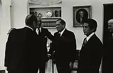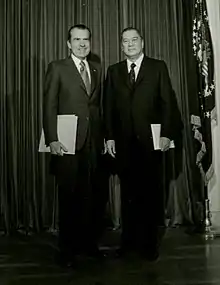 ![]() Romualdez presenting his credentials as ambassador to United States President Richard Nixon in 1971 | |