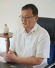 Del Rosario ran unsuccessfully for Senate as an independent in 2016.[13] In June 2016, upon assumption of Rodrigo Duterte as president of the country, del Rosario returned to government service as Undersecretary for Civil, Veterans and Retiree Affairs of the Department of National Defense.[5] Del Rosario then served as Chairman of the Housing and Urban Development Coordinating Council succeeding Leoncio Evasco Jr. in July 2017.[14] As housing secretary, del Rosario also served as Chairman of the Boards of the National Housing Authority (Philippines), Social Housing Finance Corporation, Housing and Land Use Regulatory Board, Home Development Mutual Fund (PAGIBIG), National Home Mortgage Finance Corporation and as Vice Chairman of the Home Guarantee Corporation.[4] He also headed the Task Force Bangon Marawi created in June 2017 in the aftermath of the Battle of Marawi. Following the creation of the Department of Human Settlements and Urban Development through Republic Act No. 11201 signed by President Duterte in February 2019, del Rosario was appointed as the executive department's first acting secretary with his appointment paper signed on January 2, 2020.[3] His appointment was confirmed by the Commission on Appointments on November 19, 2020.[15]