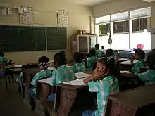 The Human Rights Measurement Initiative (HRMI)[2] finds that Suriname is fulfilling only 61.6% of what it should be fulfilling for the right to education based on the country's level of income.[3] HRMI breaks down the right to education by looking at the rights to both primary education and secondary education. While taking into consideration Suriname's income level, the nation is achieving 64.7% of what should be possible based on its resources (income) for primary education but only 58.4% for secondary education.[4]