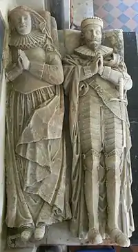 - Elizabeth Chichester, eldest daughter, wife of Sir William Wrey, 2nd Baronet (1600–1645) of Trebeigh, St Ive, Cornwall and North Russell, Sourton, Devon, MP for Liskeard, Cornwall in 1624.[11] Her eldest son was Sir Chichester Wrey, 3rd Baronet (1628–1668), of Trebeigh, MP for Lostwithiel in Cornwall. Both the 2nd and 3rd Baronets were Royalists during the Civil War.