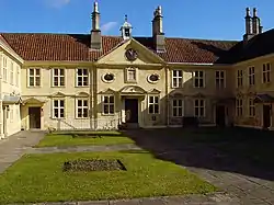 In 1691, on St Michael's Hill, Bristol, at a cost of £8,000, he founded Colstons Almshouses for the reception of 24 poor men and women, and endowed with accommodation for "Six Saylors," at a cost of £600, the merchant's almshouses in King Street. He also endowed Queen Elizabeth's Hospital school. In 1696, at a cost of £8,000, he endowed a foundation for clothing and teaching 40 boys (the books employed were to have in them "no tincture of Whiggism"); and six years afterwards he expended a further sum of £1,500 in rebuilding the schoolhouse. In 1708, at a cost of £41,200, he built and endowed his great foundation on Saint Augustine’s Back, for the instruction, clothing, maintaining and apprenticing of 100 boys; and in time of scarcity, during this and next year, he transmitted some £20,000 to the London committee,[9] to be managed by the Society of Merchant Venturers for its upkeep.[3] He gave money to schools in Temple (one of which went on to become St Mary Redcliffe and Temple School) and other parts of Bristol, and to several churches and the cathedral.[3][18]