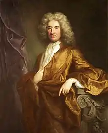 Colston was born on 2 November 1636 in Temple Street, Bristol, and baptised in the Temple Church, Bristol.[1] His parents were William Colston (1608–1681), a prosperous Royalist merchant who was High Sheriff of Bristol in 1643, and his wife Sarah Batten (d. 1701), daughter of Edward Batten; he was the eldest of at least 11 and possibly as many as 15 children. The Colston family had lived in the city since the late 13th century.[2] Colston was brought up in Bristol until the time of the English Civil War, when he probably lived for a while on his father's estate in Winterbourne, just north of the city. The family then moved to London, and Colston was educated at the Christ's Hospital school.[3] The English Civil War shaped Colston's lifelong support for order and stability in the form of monarchy and High Anglicanism.[4]