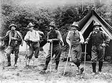 In 1896/97 FitzGerald personally financed and led a large expedition to South America to complete scientific surveys and make first ascents of some of the highest peaks in the Andes. The expedition included a geologist, surveyor, engineer, and naturalist, and six alpine guides led by Zurbriggen. After reconnoitering the Vacas valley approach to 6,959 metres (22,831 ft) Aconcagua, FitzGerald made a base camp at around 4,250 metres (13,940 ft) in the Horcones Valley, where several attempts were made to reach the summit via what is now known as the Normal Route.[4] Five attempts were made over six weeks before Zurbriggen reached the summit alone on 14 January 1897. FitzGerald had been with Zurbriggen during the ascent, but on all attempts became nauseous at around 6,000 metres (20,000 ft). Eventually, fearing he would never reach the summit and the first ascent of Aconcagua would not be made, he sent Zurbriggen on alone.
