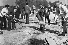 Gierek, who in 1948 was 35 and had spent 22 years abroad, was directed by the PPR authorities to return to Poland, which he did with his wife and their two sons.[5][7] Working in the Katowice district PPR organization, in December 1948, as a Sosnowiec delegate he participated in the PPR-PPS unification congress, which resulted in the establishment of the Polish United Workers' Party (PZPR). In 1949, he was designated for and attended a two-year higher party course in Warsaw, where he was judged to be poorly qualified for intellectual endeavors but highly motivated for party work. In 1951 Roman Zambrowski sent Gierek to a striking coal mine, charging him with restoring order. Gierek was able to resolve the situation using persuasion and a use of force was avoided.[8] He was a member of the Sejm, Polish parliament, from 1952.[9] During the II Congress of the PZPR (March 1954), he was elected a member of the party's Central Committee. As chief of the Central Committee's Heavy Industry Division, he worked directly under First Secretary Bolesław Bierut in Warsaw.[8]