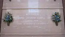 Archbishop Hanna retired March 2, 1935, due to ill health and advancing age. Pope Pius XI appointed Hanna the titular Archbishop of Gortyna.[9] He was succeeded as Archbishop of San Francisco by John Joseph Mitty. Archbishop Hanna moved to Rome after his retirement, where he died on July 10, 1944.[10] Archbishop Hanna's body was returned to San Francisco in 1947. He is buried in the Archbishop's Crypt at Holy Cross Cemetery in Colma, California.