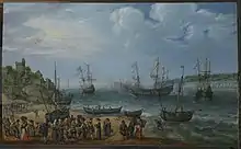 At Bantam, between 28 October and 2 November 1605, he put a summary check on the ambitions of the Dutch, but the service which he thus rendered the English merchants was more than counterbalanced by his plundering a richly laden China ship on her way to Java. Dutch reprisals for his attacks on them would end in the 1623 Amboyna massacre.[6] Michelborne then made a serious error in allowing Japanese pirates aboard the Tiger. They attacked the crew, killed Davis and were only repelled by cannons being fired through a cabin wall, which tore them to pieces. Only one man survived, whom Michelborne ordered hung from the yardarm, but the rope snapped and he fell into the sea.[7]