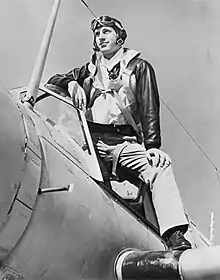 | Distinguished Flying Cross – for shooting down three Japanese fighter planes in a single day, October 24, 1944, during the Battle of Leyte Gulf.[29] | |