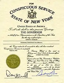 | Conspicuous Service Cross (New York) – awarded in December 2020 by the Governor of the State of New York for his service during World War II, upon initiative by South Park High School. |