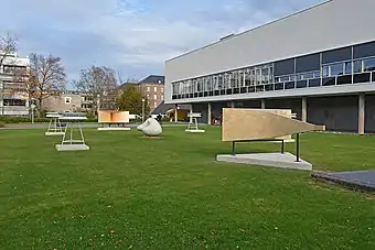 In 2004, Lars Spuybroek and Edwin van der Heide realized the interactive architectural sound sculpture Son-O-House. For the exhibition of his installation Pneumatic Sound Field, part of the Synthetic Times[19] exhibition at the National Art Museum of China (NAMOC) in 2008, Lars Spuybroek designed a dedicated pavilion. As part of Sónar 2014, van der Heide realized his composition Spectral Diffractions for the Barcelona Pavilion by Mies van der Rohe.[20][21]