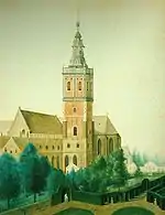 The origin of the abbey, dedicated to Saint Bartholomew, was traditionally linked to the religious community that had grown up round the cell of the hermit Everelmus in about 1050, although the first reference dates only from 1130.[1]