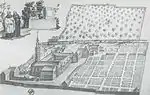 In 1803, after being sold off as state property, the abbey was entirely demolished by its French purchaser Rousseau, except for a single doorway onto the Eekhoutstraat, which still stands. Isolated plots which were connected to their property in the Garenmarkt came into the hands of the Du Jardin family. After the failure of their family business, the Bank Du Jardin, in 1874 a large part of their property here came into the possession of the Sisters of the Sint-Andreasinstituut, who had a school built on it. The site of the former abbey is now occupied by the Groeningemuseum.