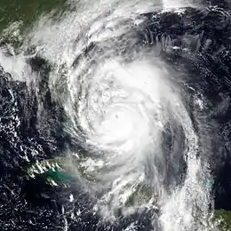![]() Satellite image of Hurricane Matthew east of the Florida Peninsula on October 6 | |