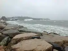 Most of the damage in Rhode Island was along the coastline and in southern towns, including deep into Narragansett Bay. The storm surge washed away large sections of the Newport Cliff Walk.[30] The walk was closed through June 2014, when it reopened after a $5.2 million restoration.[31]