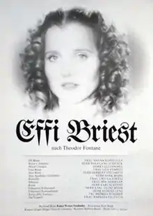 Effi Briest (also known as Fontane Effi Briest; original title: Fontane Effi Briest oder Viele, die eine Ahnung haben von ihren Möglichkeiten und Bedürfnissen und trotzdem das herrschende System in ihrem Kopf akzeptieren durch ihre Taten und es somit festigen und durchaus bestätigen,[3] literally Fontane Effi Briest or Many people who are aware of their own capabilities and needs just acquiesce to the prevailing system in their thoughts and deeds, thereby confirming and reinforcing it) is a 1974 West German black-and-white historical drama film directed, written and narrated by Rainer Werner Fassbinder, and produced by Juliane Lorenz. Fassbinder adapted the screenplay from German author Theodor Fontane's 1894 novel of the same name about a young 19th century woman whose affair with a charismatic womanizer has long-term effects on her marriage to an older man. The film uses Fontane's words in dialogue, narration and text of letters.[4]