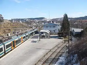 Egersund Station (Norwegian: Egersund stasjon) is a railway station located in the town of Egersund in Eigersund municipality in Rogaland county, Norway. The station is located on the Sørlandet Line, about 74.71 kilometers (46.42 mi) south of the city of Stavanger. It is served by regional trains between Stavanger and Kristiansand as well as being the terminus of the Jæren Commuter Rail to Stavanger.[1]