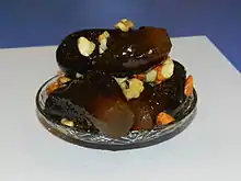 Eggplant jam (Azerbaijani: Badımcan mürəbbəsi, Turkish: Patlıcan reçeli)[1][2] is a whole-fruit jam from the Azerbaijani[3] and Turkish cuisines. In Turkey, it is especially popular in Antalya,[4] Iğdır and Kağızman.[5] The Governorate of Iğdır Province is making efforts to obtain a geographical indication for the name "patlıcan reçeli".[6]