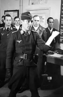 Prinz zur Lippe-Weißenfeld joined the Austrian Bundesheer in 1936 at the age of 18, initially serving in the infantry. In the aftermaths of the 1938 Anschluss, the incorporation of Austria into Greater Germany by Nazi Germany, he transferred to the German Luftwaffe and was promoted to Leutnant in 1939. He had earned his Luftwaffe Pilots Badge on 5 October 1938 and underwent further training at Fürstenfeldbruck, Schleißheim and Vienna-Aspern.[5] His Luftwaffe career started with the II. Gruppe (2nd group) of the Zerstörergeschwader 76 (ZG 76) before he was transferred to the night fighter wing Nachtjagdgeschwader 1 (NJG 1) on 4 August 1940.[Note 4] The unit was based at Gütersloh where he familiarised himself with the methods of the night fighters.[6]