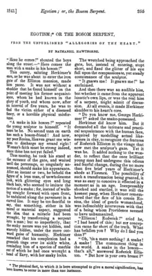 "Egotism; or, The Bosom-Serpent" is a short story by Nathaniel Hawthorne published in 1843 in The United States Magazine and Democratic Review in New York.