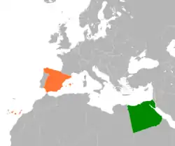 Egypt–Spain relations are the bilateral and diplomatic relations between these two countries. Egypt has an embassy in Madrid.[1][2] Spain has an embassy in Cairo.[3] Both countries share a common framework in the context of the Union for the Mediterranean.