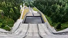 Eibenstock Dam (German: Talsperre Eibenstock) near Eibenstock in the Ore Mountains, Germany, is the largest dam in the Free State of Saxony in terms of the height of the dam above the valley floor, and its reservoir is the largest in volume in Saxony.[1] The dam impounds the waters of the Zwickauer Mulde and supplies drinking water to the region of Chemnitz and Zwickau, as well as providing flood protection, delivering extra water during times of drought and, to a lesser extent, generating electricity from hydropower. Its dimensions make it the second largest drinking water reservoir in Germany's new federal states.