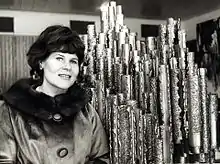 ![]() Hiltunen with a miniature version of the Sibelius sculpture in 1965. | |