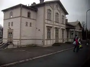 The Ekenäs railway station (Swedish: Ekenäs järnvägsstation, Finnish: Tammisaaren rautatieasema) is located in Raseborg, Finland, in the urban area and city seat of Ekenäs. It is located along the Karis–Hanko railway,[3] and its neighboring stations are Skogby in the west and Dragsvik in the east.[4]