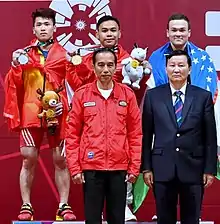 Eko Yuli Irawan (born 24 July 1989) is an Indonesian weightlifter, Olympian, and World Champion competing in the 62 kg category until 2018 and 61 kg starting in 2018 after the International Weightlifting Federation reorganized the categories.[3]