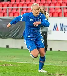 Elísa Viðarsdóttir (born 26 May 1991) is an Icelandic footballer who plays as a defender in the Úrvalsdeild for Valur and the Iceland women's national football team. She is the younger sister of Margrét Lára Viðarsdóttir, Iceland's record goalscorer.[1] Like Margrét Lára, she began her career with Úrvalsdeild club ÍBV.