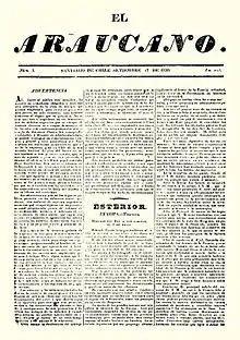 El Araucano (The Araucanian) was a biweekly newspaper published in Santiago, Chile from 1830 to 1877. Inspired by Interior Minister Diego Portales, it was an initiative of the conservative government to publish its laws and decrees.[1] Due to government support, it never had funding problems.
