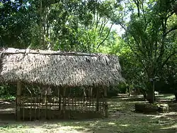 Archaeologists have mapped 268 structures clustered in 53 groups around approximately 68 patios in the site core.[23] Residential structures were concentrated in the area surrounding the ceremonial centre, especially on the north and west sides near to the reservoir.[23] Residences tended to be larger the closer they were to the reservoir.[24] The residential area of El Chal was extensive and archaeologists have divided it into four sectors.[4] Municipal consists of the area occupied by the modern village, El Arrepentimiento is the northeastern portion of the site, Panorama is the northwestern area, and Central is the site core.[25] Central El Chal contains 25 groups, Arrepentimiento contains 40 groups, Panorama contains 53 groups and Municipal contains 18 groups.[26] Panorama was an area of chert production while Municipal is associated with the ritual complex of the city.[4]